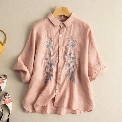 Nesta – Embroidered V-Neck Blouse -